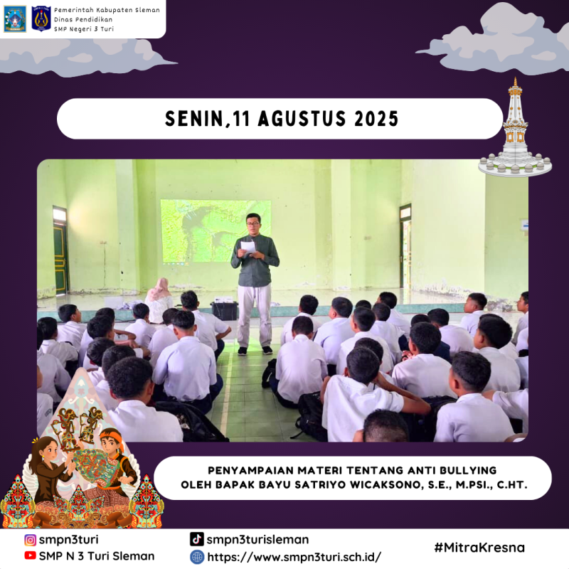 Melalui sosialisasi ini, peserta didik diajak untuk lebih peka, berani berkata tidak pada bullying, dan berusaha menciptakan lingkungan pertemanan yang sehat. Kegiatan ini sejalan dengan tema besar kegiatan sekolah hari ini, “Memayu Hayuning Buwana Krentenging Iman lan Laestarining Lingkungan Mrih Kuncaraning Kebudayan,” di mana salah satunya menekankan pentingnya menjaga keharmonisan dalam pergaulan.